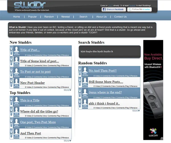 I was commissioned to design a social network site. The idea behind this is, imagine that you are having a conversation with a friend. Now you are talking with your own slang and lingo, and realize that if you take one section, out of context, and some one heard that, it would sound weird. Well here’s the place to post it.